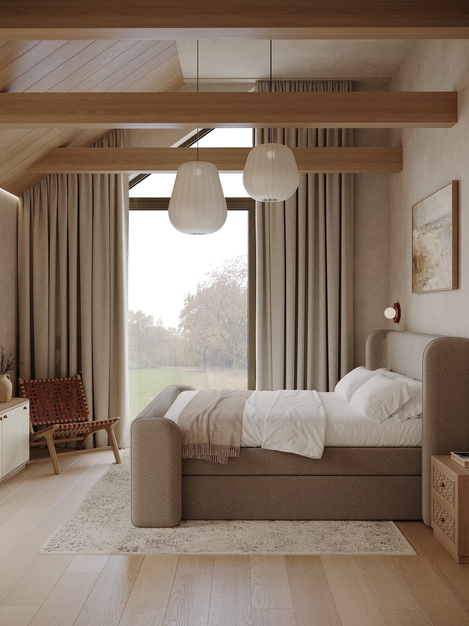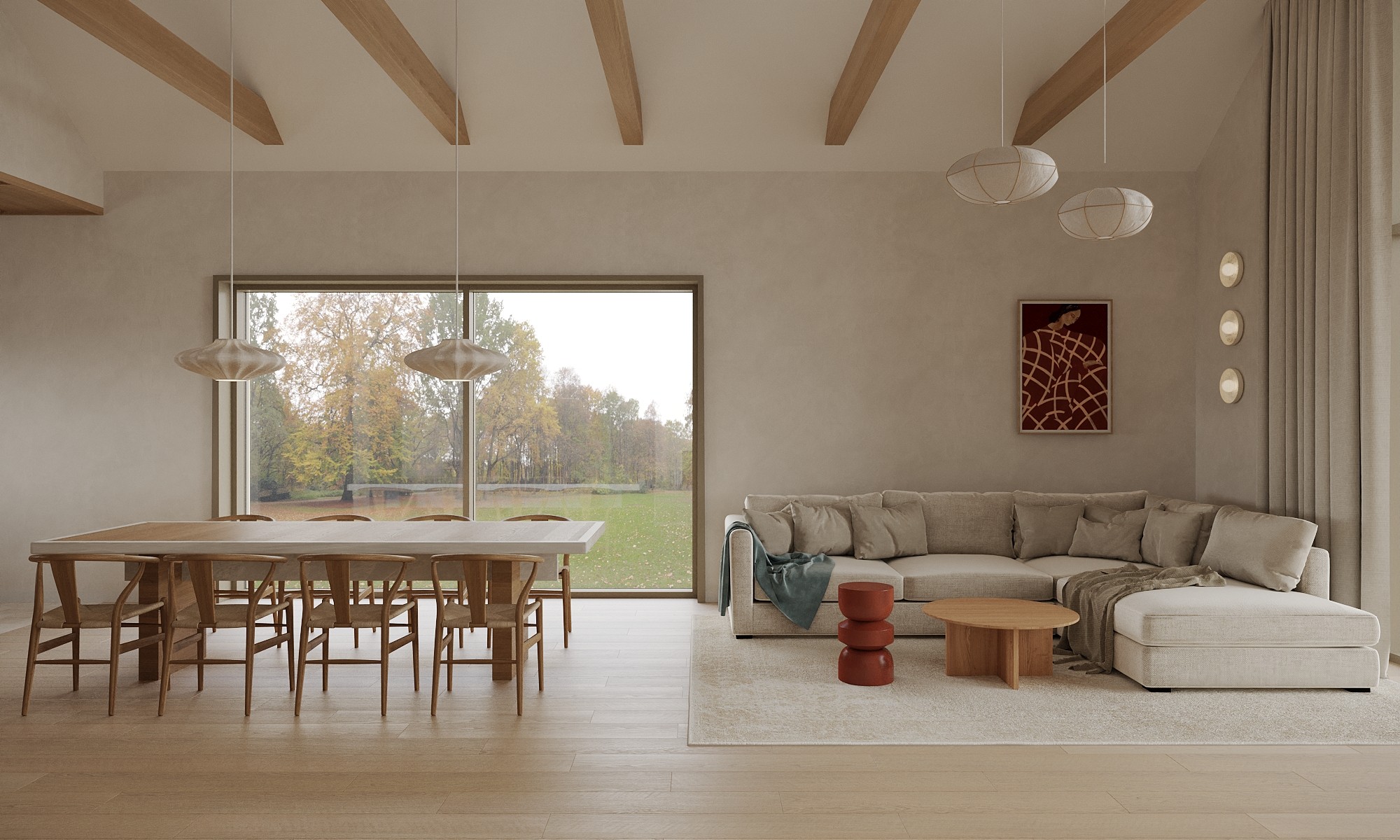 Large windows frame the forest like living artwork, while natural materials and soft tones create a warm, timeless interior. Every space is thoughtfully designed to balance comfort, privacy, and a sense of escape—offering a refined yet effortless living experience immersed in greenery.