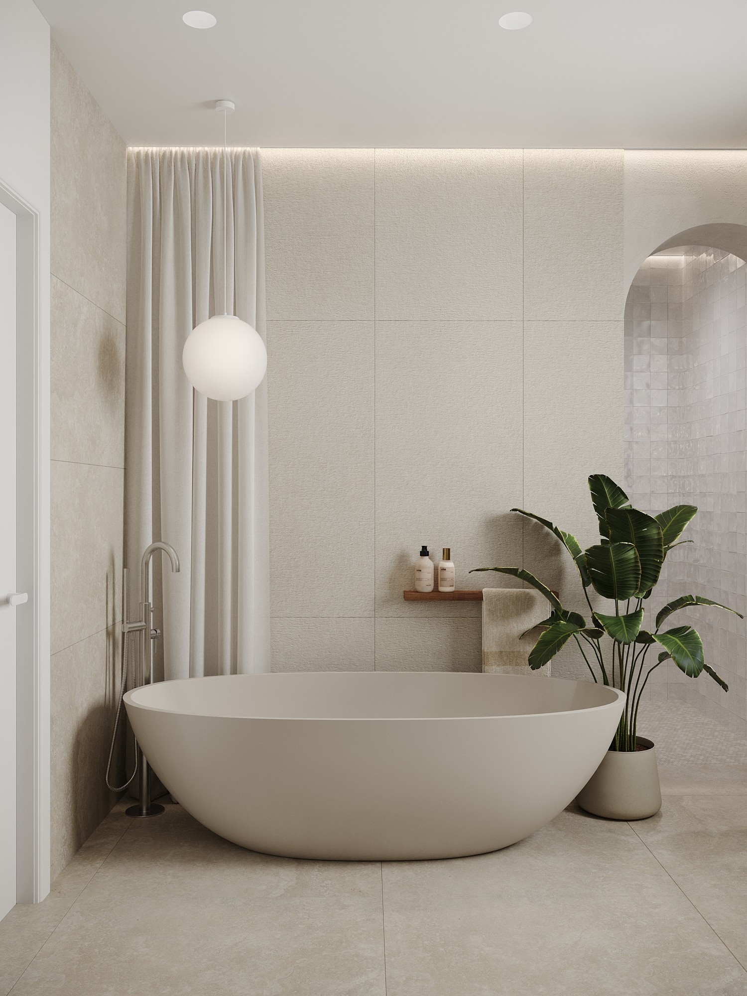 A calm, light-filled bathroom designed for moments of quiet indulgence.